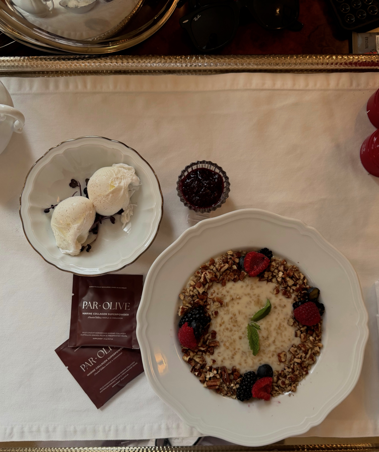 3. Make a bowl of steel cut oatmeal with 2 tsp. Par Olive Collagen, and top with organic walnuts, goji berries, blackberries, flaxseeds and raw honey