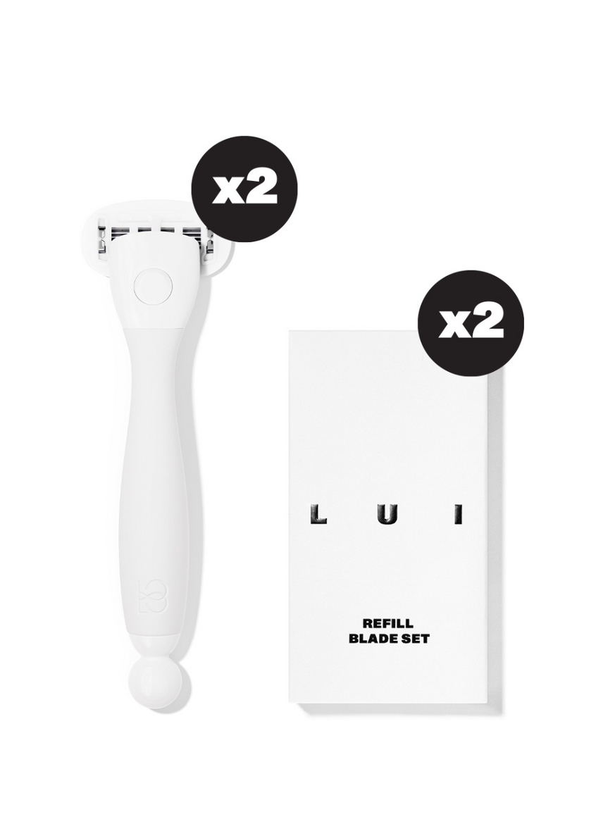 Double-up on LUI with our Duo Set. Containing two of our signature Razors and two Refill Blade Sets, it’s a great option for gifting, sharing or simply stocking up.