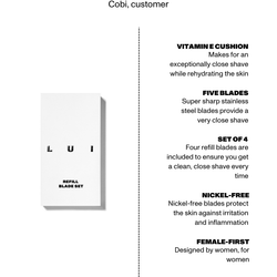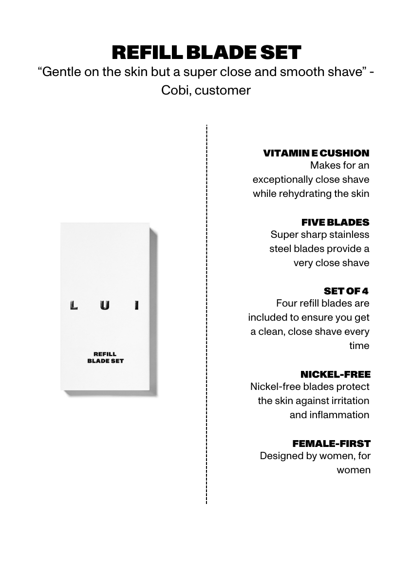 Five diamond-sharp blades, enclosed in a moisturising vitamin E cushion, make for an exceptionally close shave while rehydrating the skin.