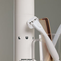 Smooth the Shave Cream generously onto damp skin, lather and glide the Razor with the direction of hair growth and then against it for a clean shave. We recommend air drying your Razor after each use and storing it outside of the shower/bath in between uses. Replace your Refill Blades after 6-8 shaves. Keep out of direct sunlight. Discolouration may occur.