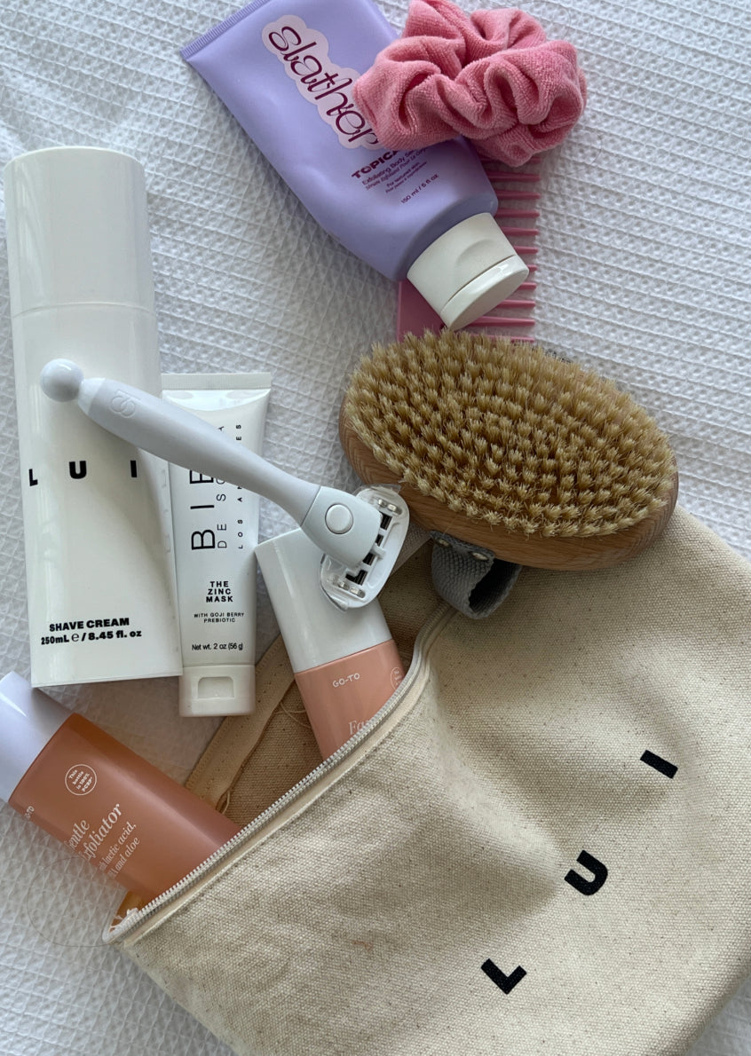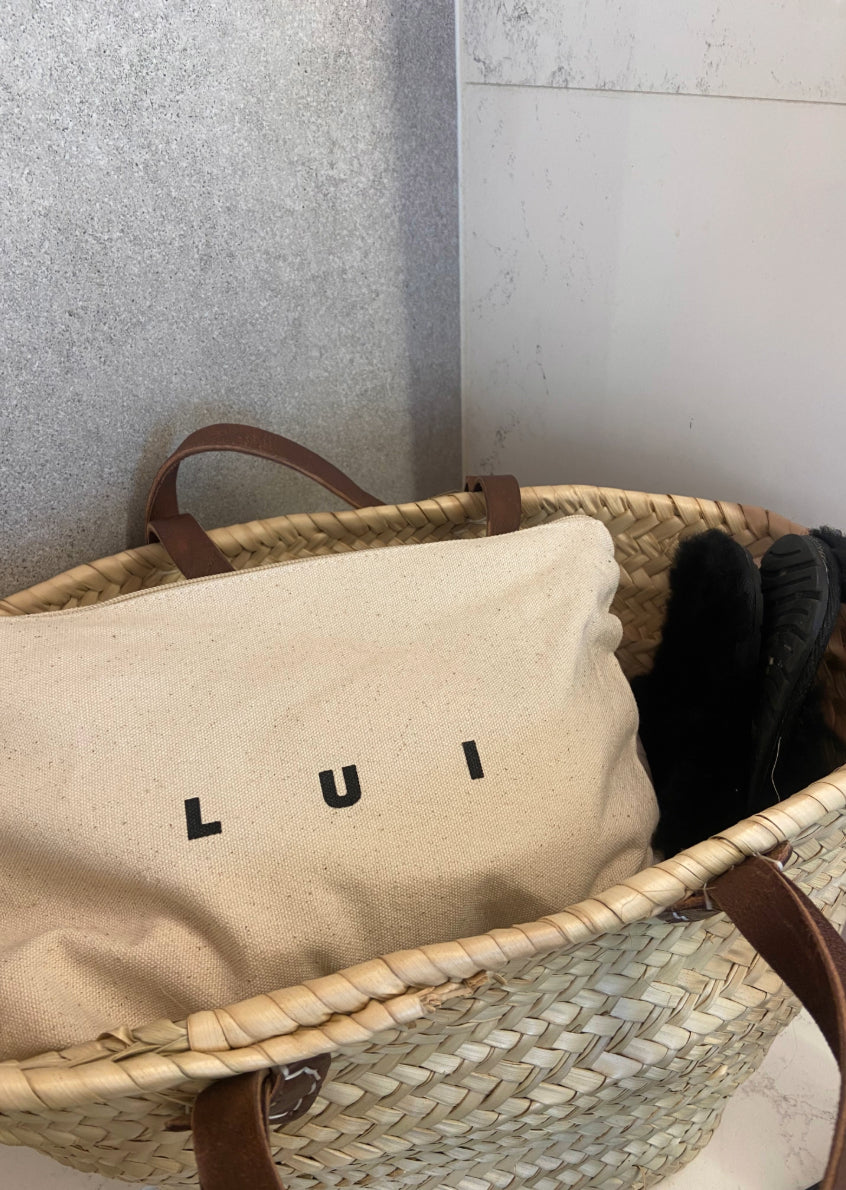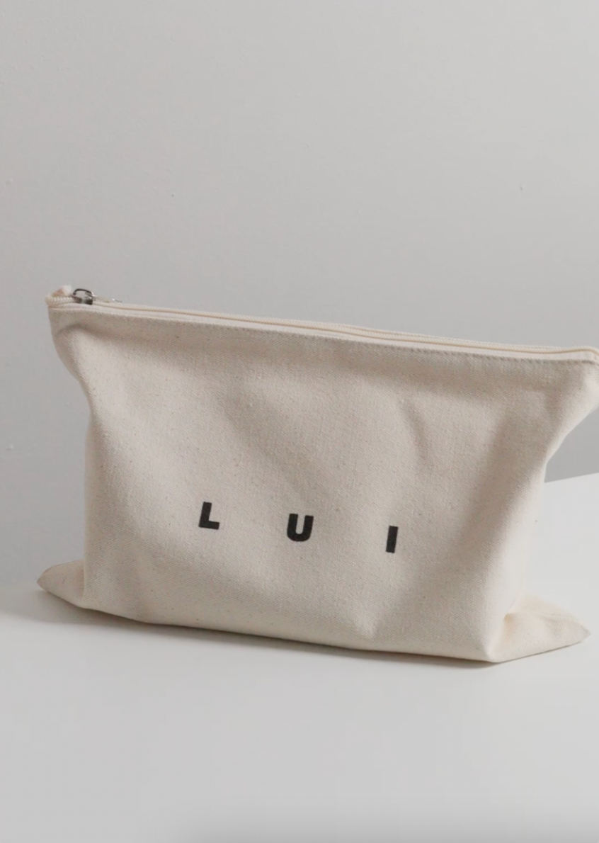 Made from premium 100% cotton and stamped with the LUI logo, it’s the perfect size for everyday essentials. Use it to store your keys, phone, makeup and computer cords, or stow your LUI products inside for a night away.